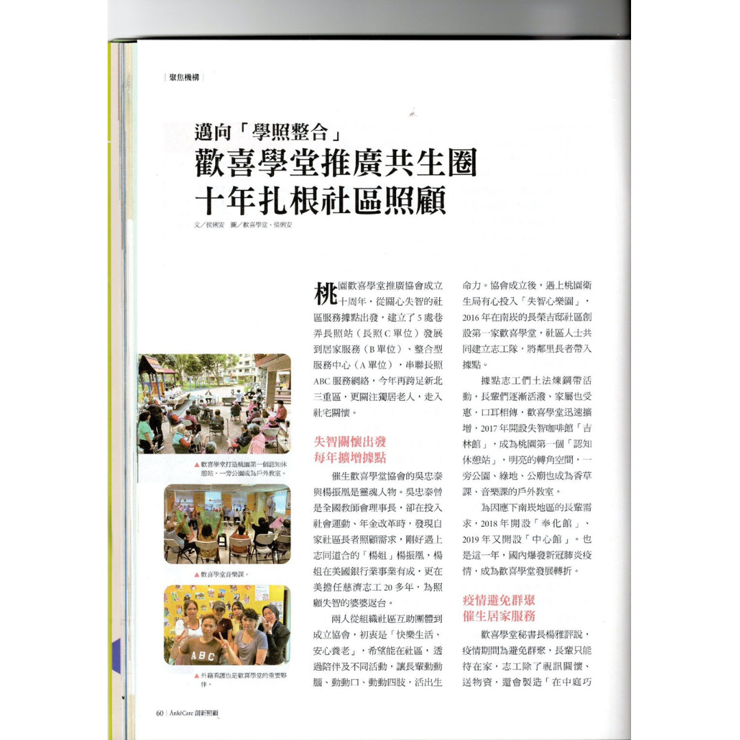 侒可雜誌長期關注台灣長照產業,前陣子特別來到歡喜學堂進行深度採訪。 在最新 11 月刊中,刊出了歡喜